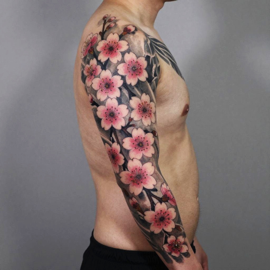 Male Cherry Blossom Tattoo Sleeve