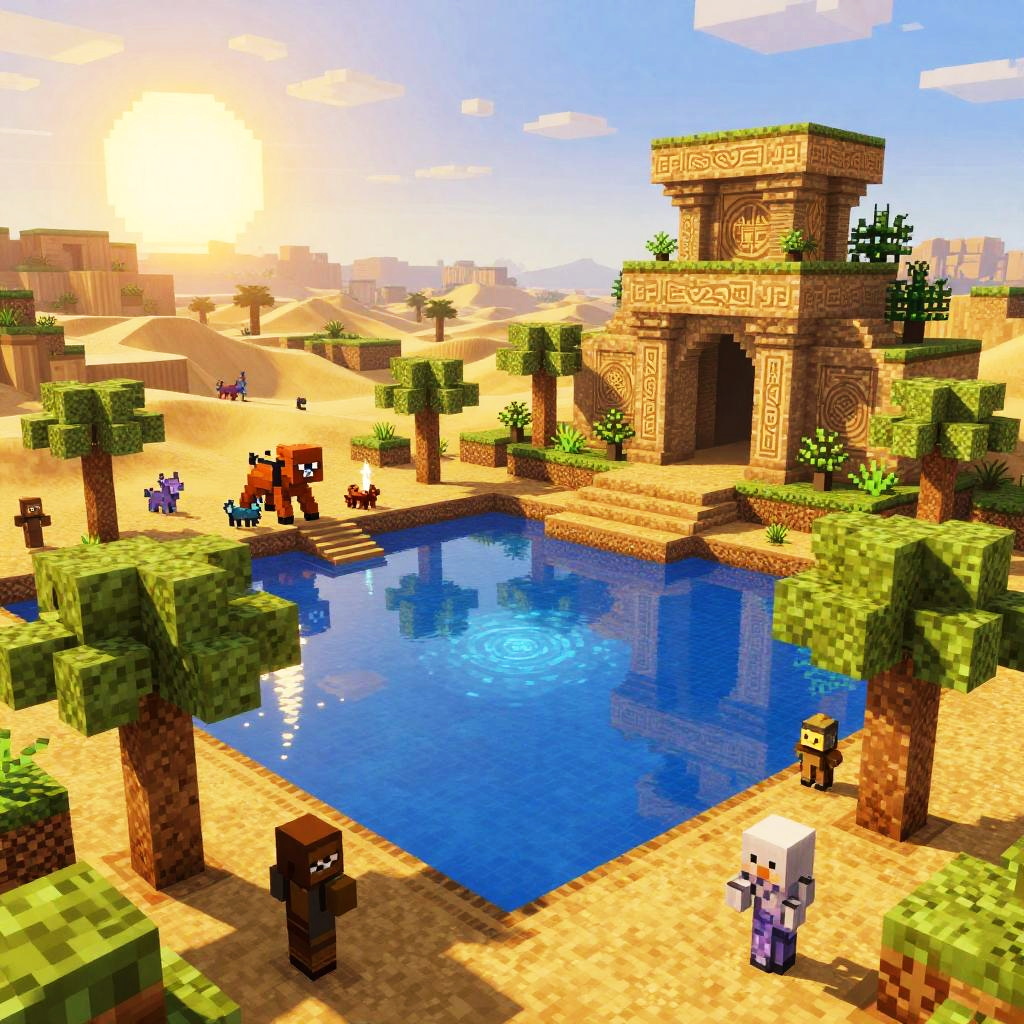 Pixelated Fantasy Minecraft Desert Oasis