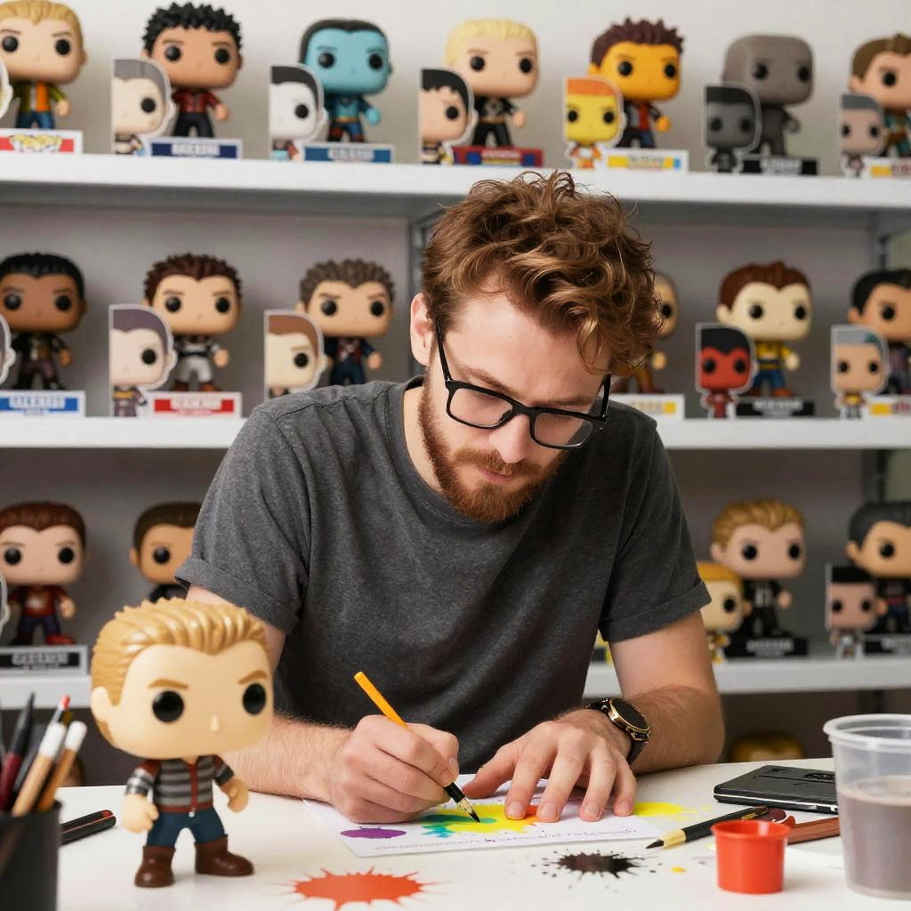Pop art creator scene, vibrant colors and bold outlines, a retro artist’s studio filled with paint splatters, comic-style expressions, energetic brush strokes, and iconic pop art patterns, dynamic and lively atmosphere, mid-century modern aesthetic