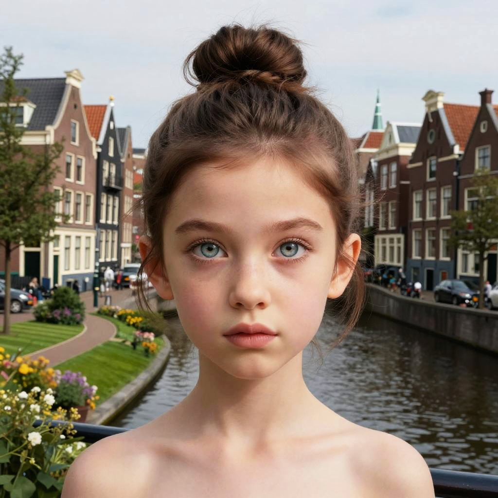 ((best quality)), ((masterpiece)), (detailed), nsfw, photorealistic, ultra high res, intricate, hyperdetailed, (skindentation), cute, feminine, detailed body, (detailed face:1.1), (outlined iris), (hidrocor lenses), (perfect eyes), 4k, beautiful, beautiful city, rich history with modern charm, unique and varied, traditional Dutch buildings, modern structures, and innovative design, canals, picturesque views at every turn, The buildings along the canals are tall and narrow, with ornate facades and colorful paint schemes, buildings are historic, dating back to the 17th century, preserved and restored, parks and green spaces, Vondelpark, manicured lawns, winding paths, unique gabled roofs, steeply sloping angles and decorative elements such as finials and spires, distinctive look, modern and vibrant city, with a thriving arts and culture scene, galleries, and performance spaces, showcasing everything from classical art to contemporary music and theater))a( Time Travel and Neural Interface and Solar energy and Galactic Civilization and Personal flying vehicles and 3D printing )Wool, Polyester (Peasant blouse and skirt with a simple vest or bodice) (silicon lips:1.3) and (lips filler:1.3), (thick lips:1.3), (gigantic breasts:1.2), wide hips, thick thighs, she has light blue and grey colored hair, she has medium hair length and a fallero hairdo and wispy bangs and hair covering eyes hair style, art by Josan Gonzalez and Akihiko Yoshida