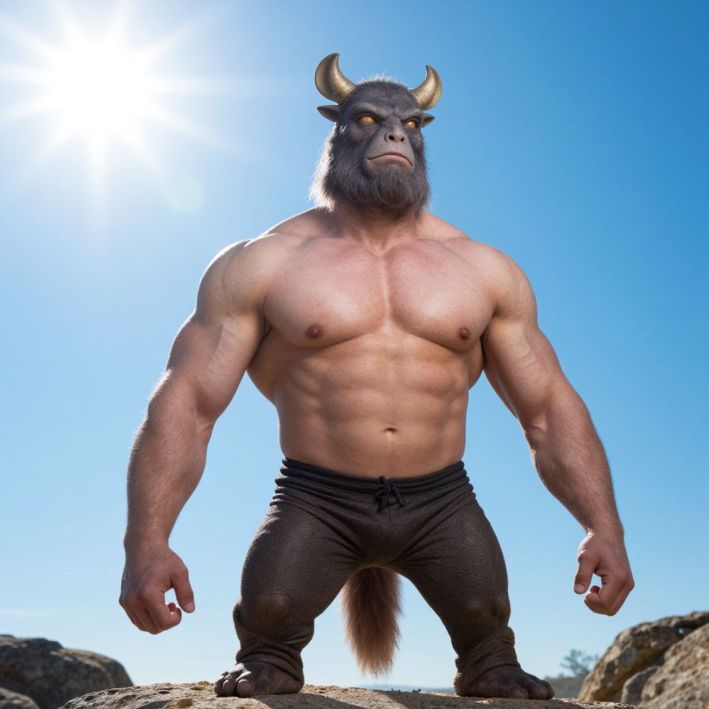 Glitchcore Minotaur Bodybuilding Photoshoot