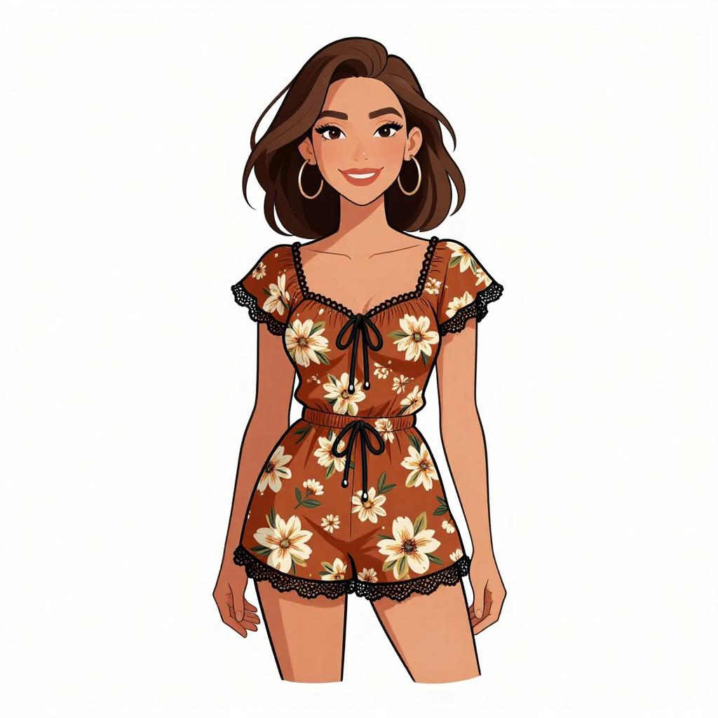 Bohemian Woman in Sunflower Romper