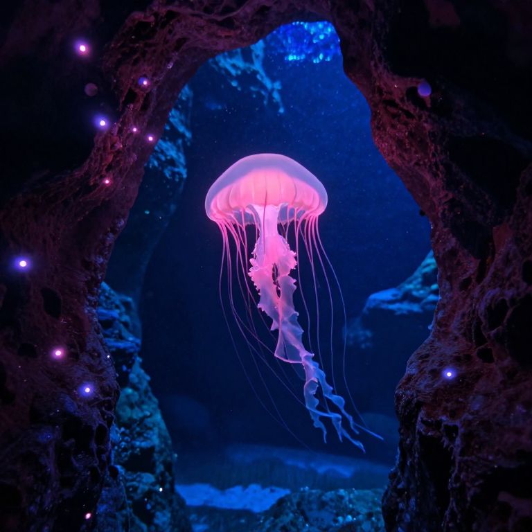 Glowing Pink Jellyfish in Underwater Cavern