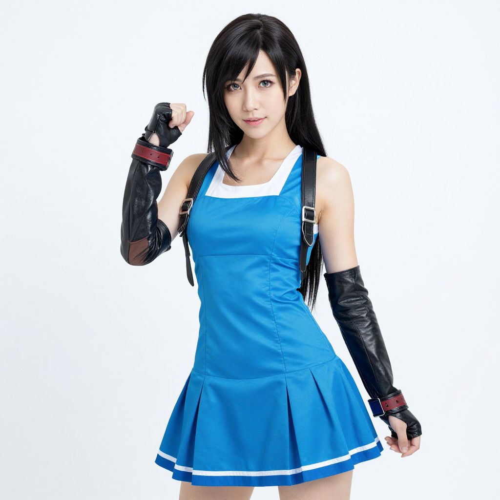 Tifa Blue Dress Cosplay, asian woman in blue dress posing for a picture