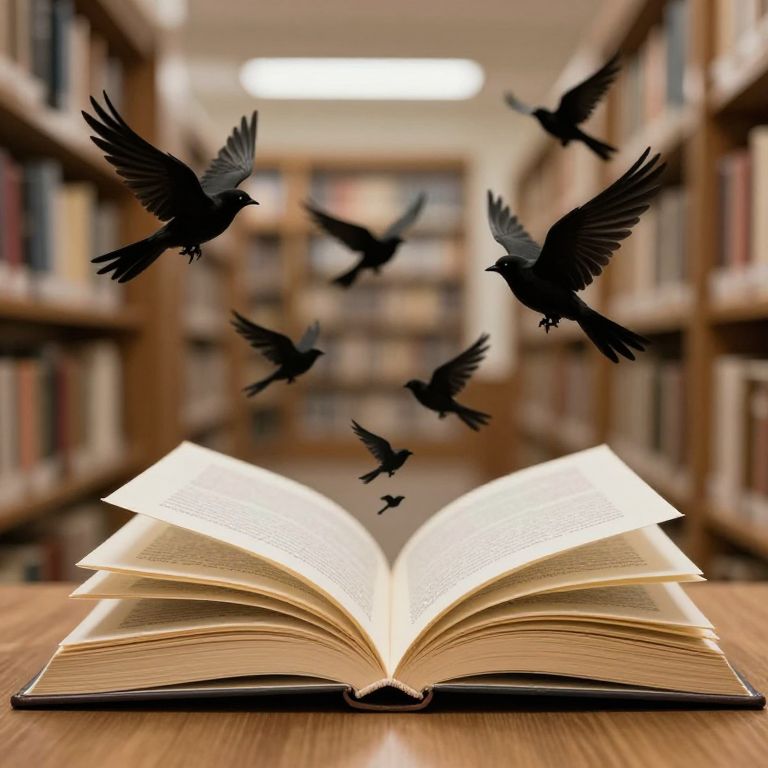 A librarian tends to books that only open when sung to, their pages unfolding like wings and releasing flocks of ink-black sparrows into the air.