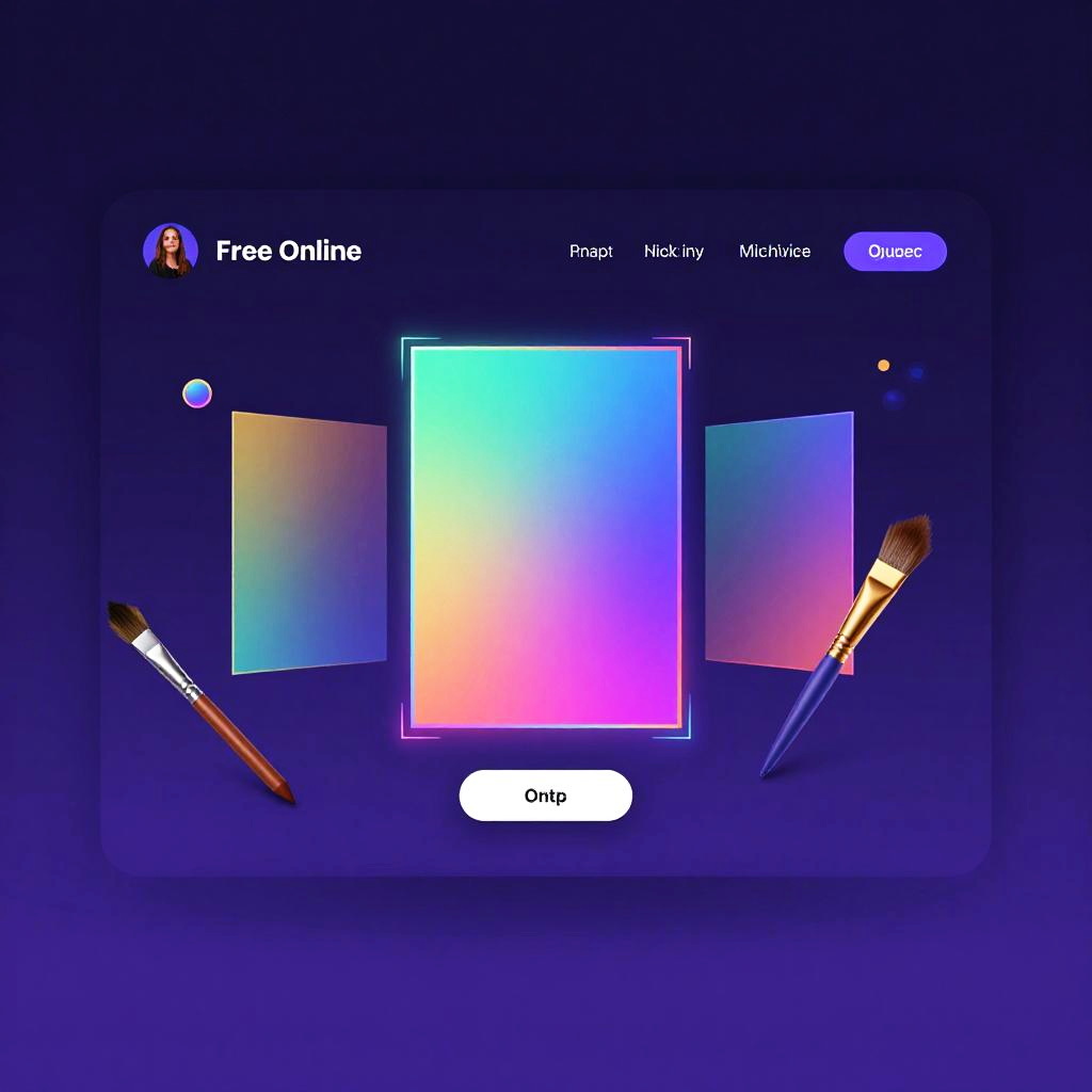 Digital art free online platform, vibrant futuristic user interface with neon accents, artists collaborating remotely, floating paintbrushes and holographic canvases, sleek modern design, vivid colors, seamless creative environment, high detail