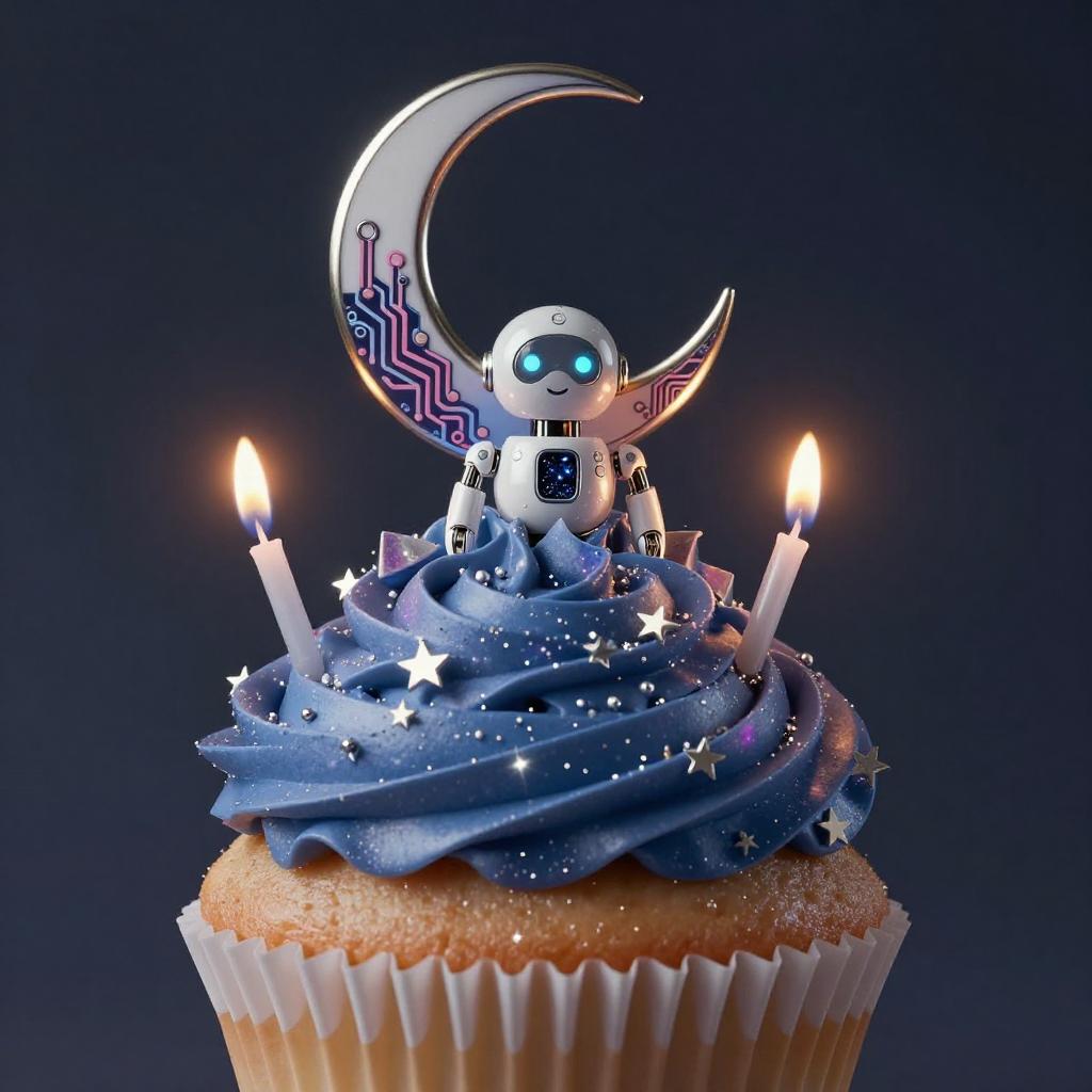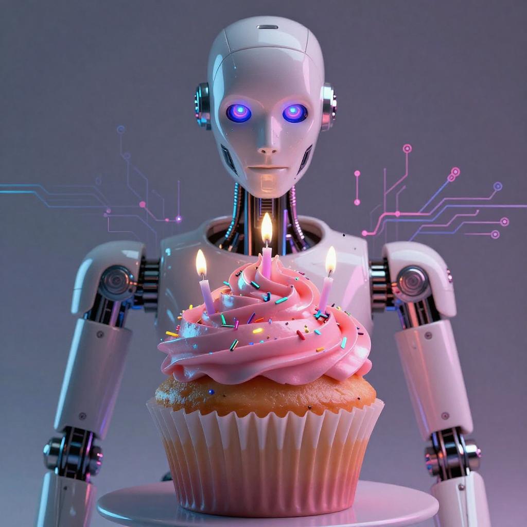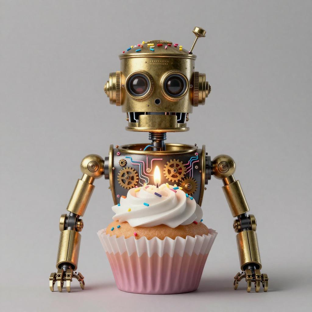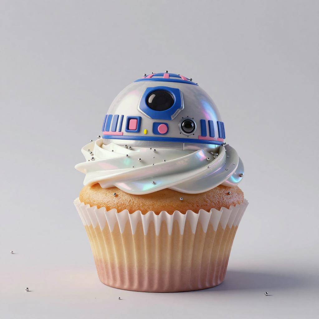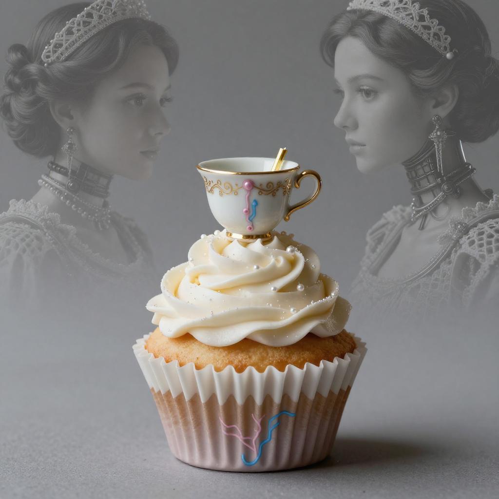 A high quality digital art of a Cupcake bioluminescent jellyfish automaton, translucent jelly-glaze frosting with bioluminescent pearl LEDs and holographic circuit-sprinkles, pink and blue circuits, double exposure, up close portrait, (double exposure:1.05), elegant theme, octane render, droid, concept photo, 8k, cinematic lighting, negative space, beautiful lighting, product picture