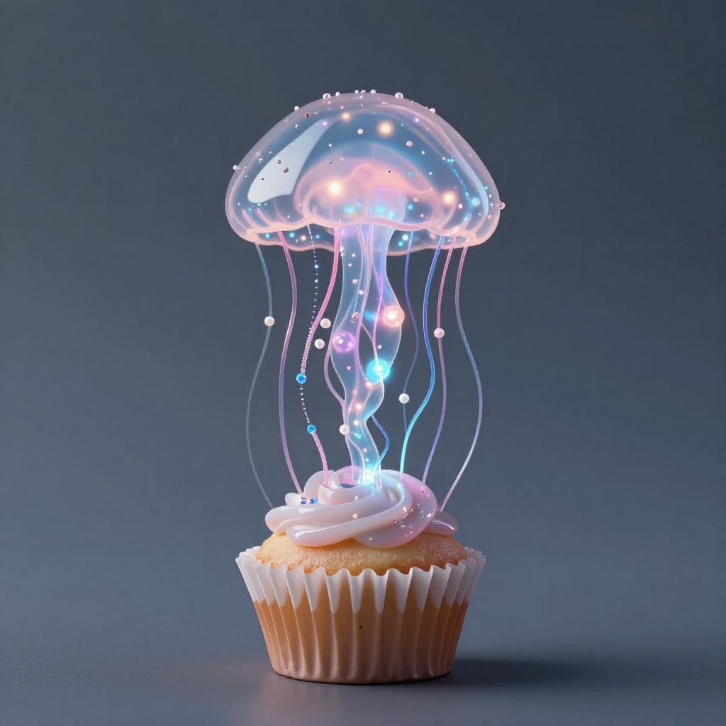 Elegant Bioluminescent Jellyfish Cupcake Automaton Portrait