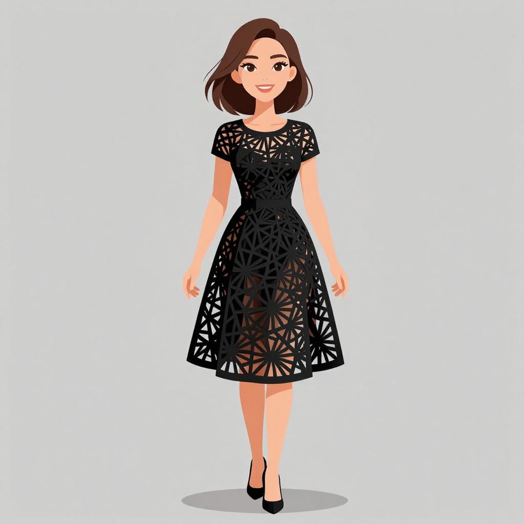 Smiling Woman in Minimalist Grid Dress