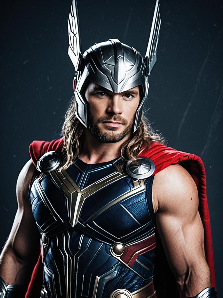 Man in Thor Love and Thunder Costume, photorealistic detailed studio portrait