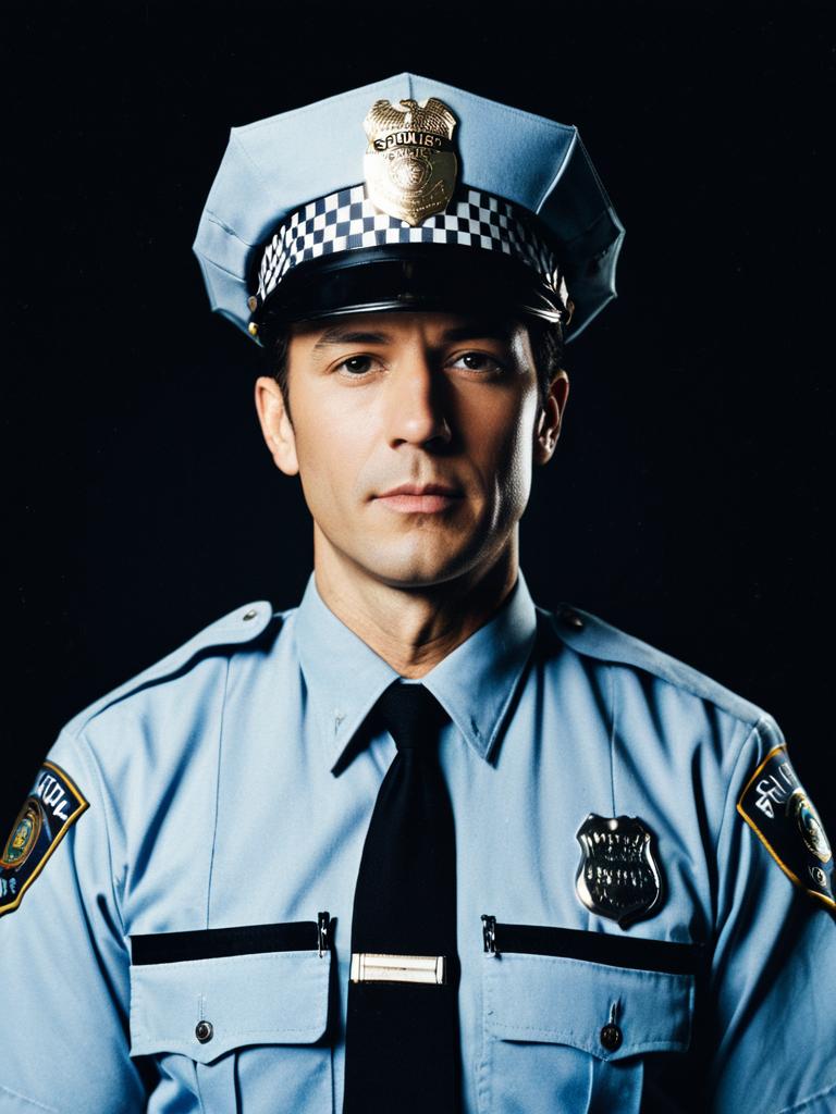 Man in Police Uniform, close-up detailed headshot, photorealistic realism