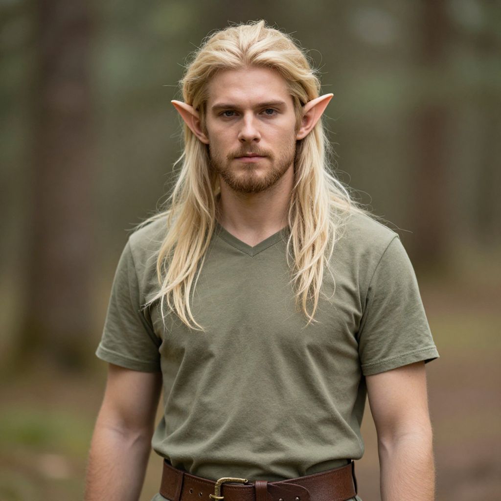 "boy dobby costume, solo, pointy ears, blonde hair, blue eyes, elf, male focus, blurry, 1boy, looking at viewer, realistic, blurry background, outdoors, upper body, hood Realistic photo of casual sexy person with pretty face"