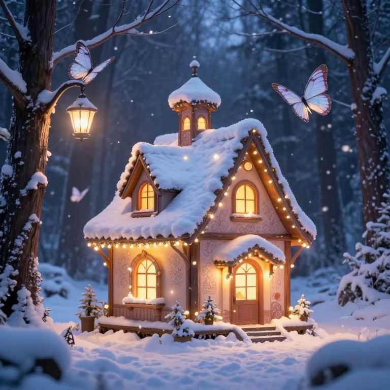Whimsical Winter Cottage with Butterflies