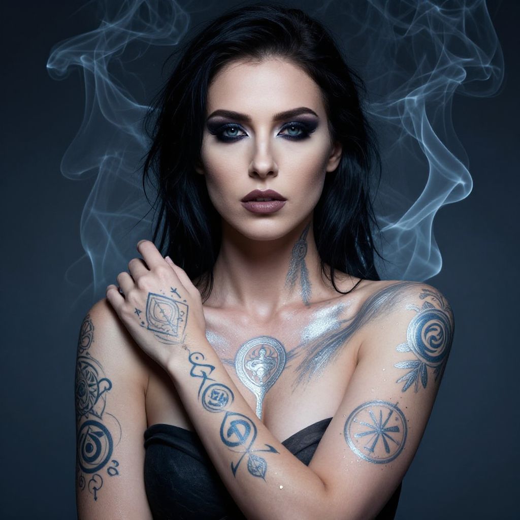 Elegant Woman with Red Rose Tattoos
