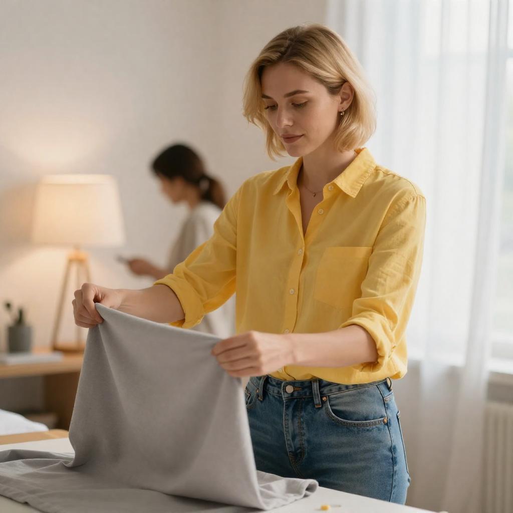 Woman Adjusting Hair in Modern Bathroom