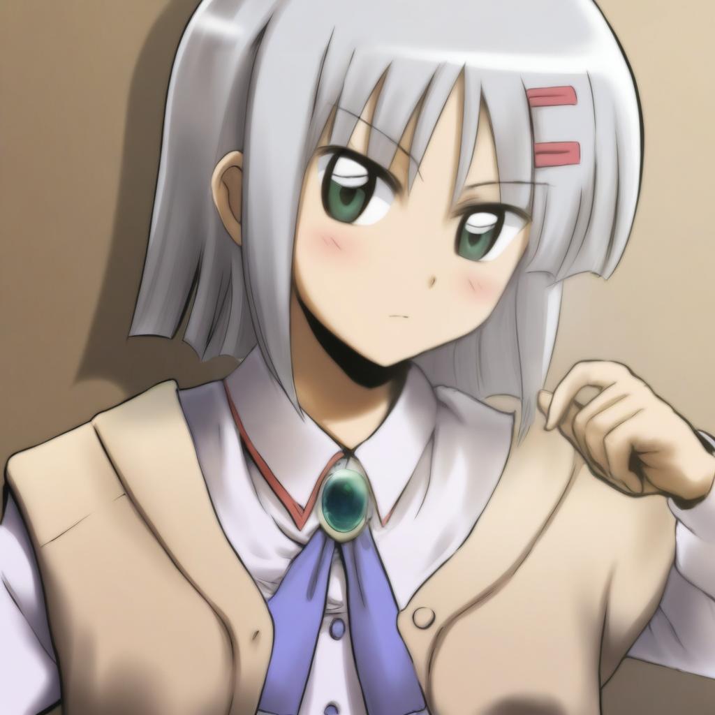 Aizawa sakuya, hayate no gotoku!, 1girl, green eyes, short hair, grey hair, hairclip, by artist aoba (smartbeat), leet