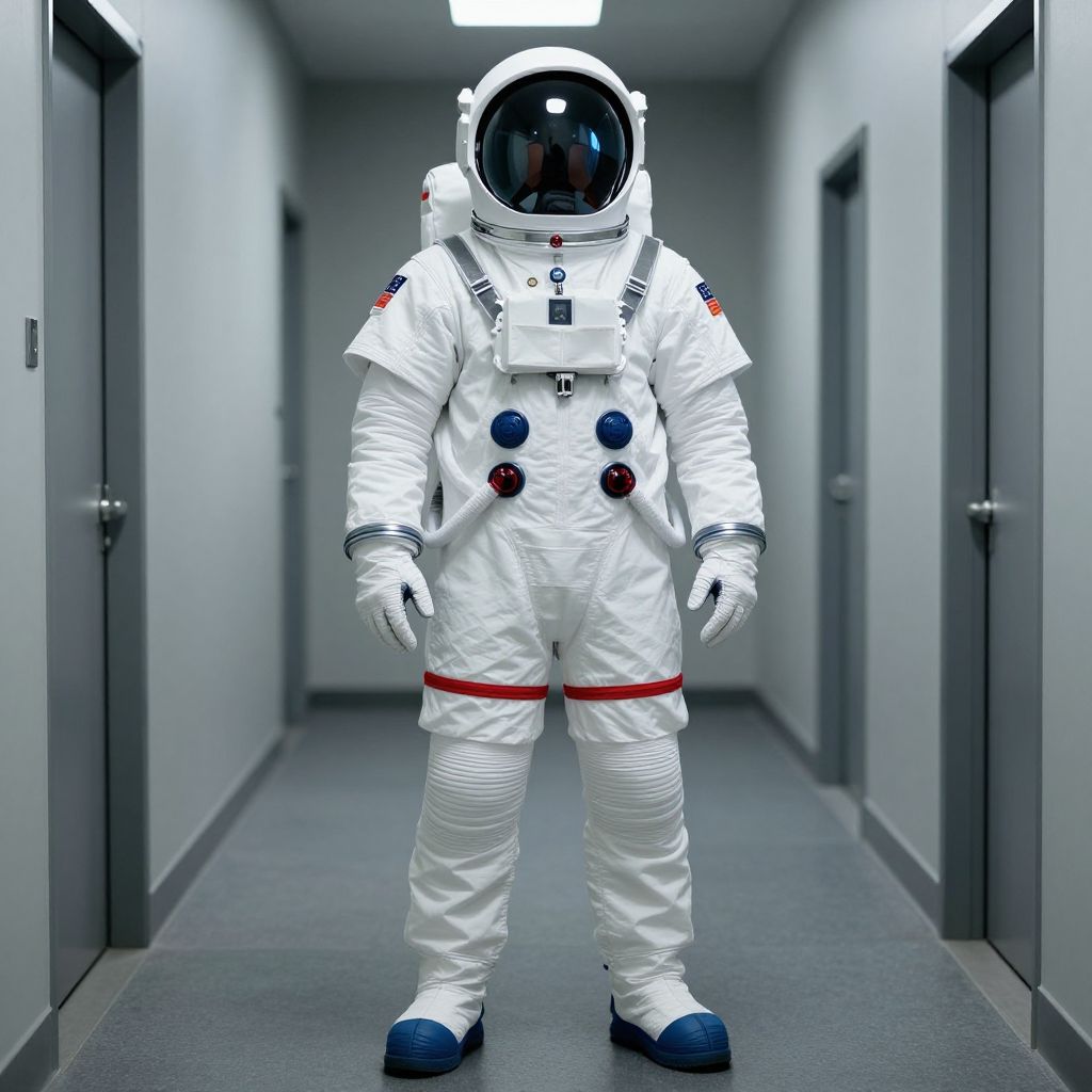 Space Astronaut Costume, man in a space suit standing in a hallway