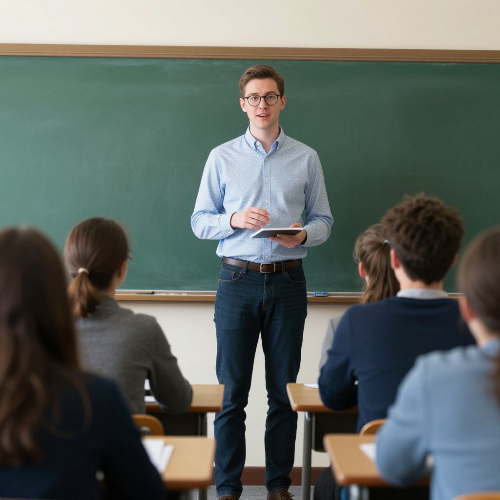 Boring Neoclassical Teacher in Classroom