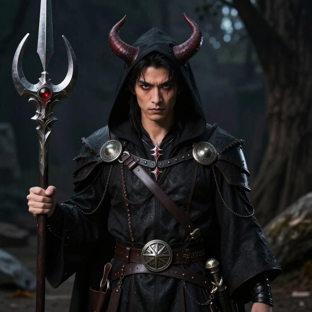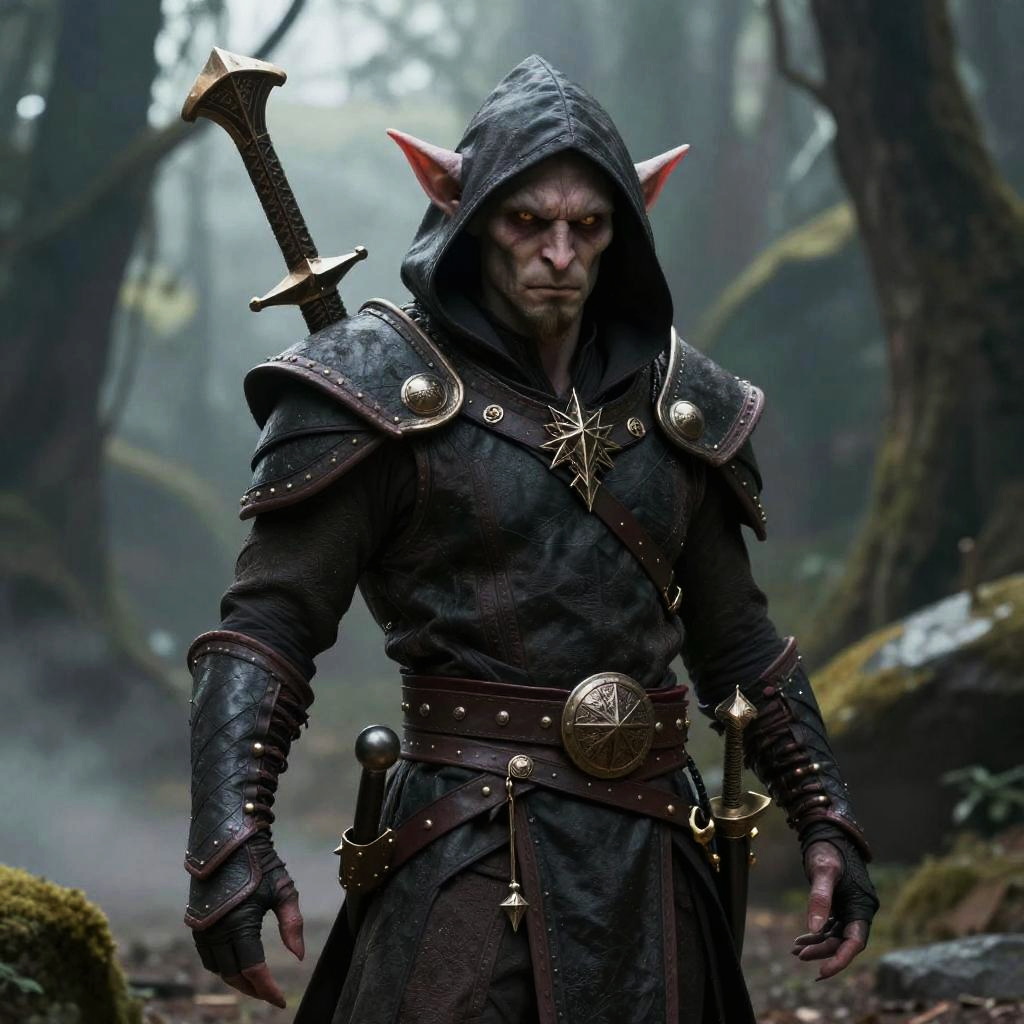 A goblin who is both a warlock and a fighter, portrayed as very handsome