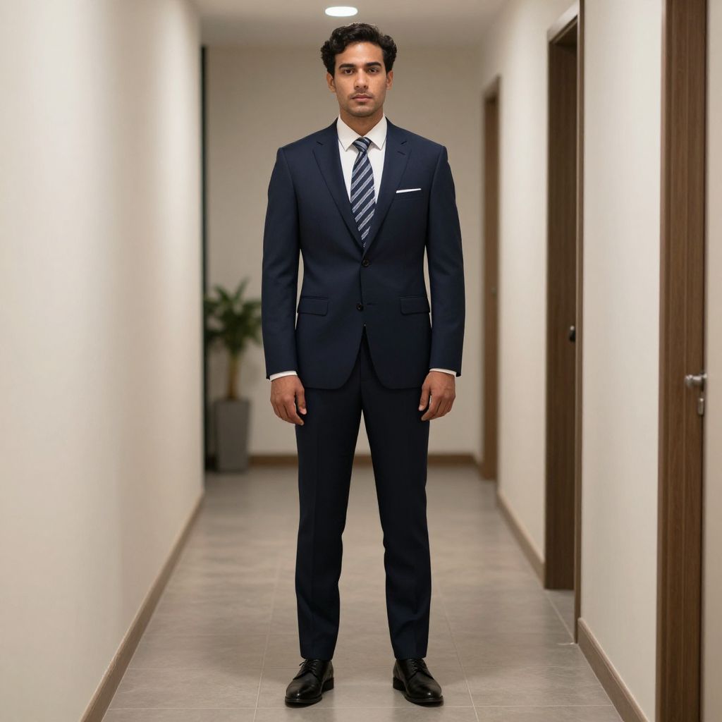 Menswear Fashion Costume, man in a suit and tie standing in a hallway