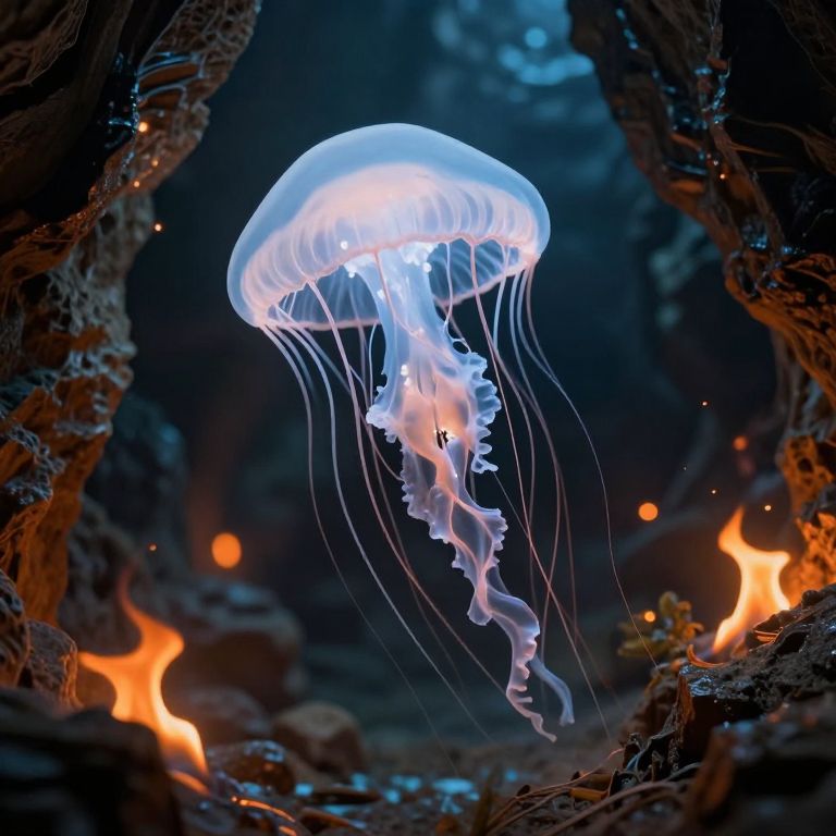 Ethereal Glowing Jellyfish in Cavern