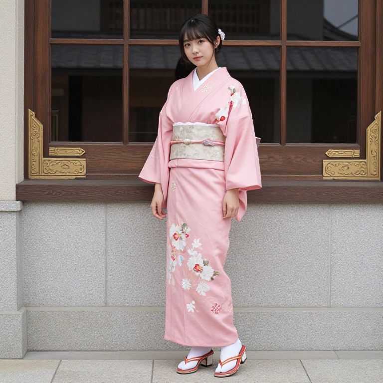 Woman in Floral Kimono on Sidewalk