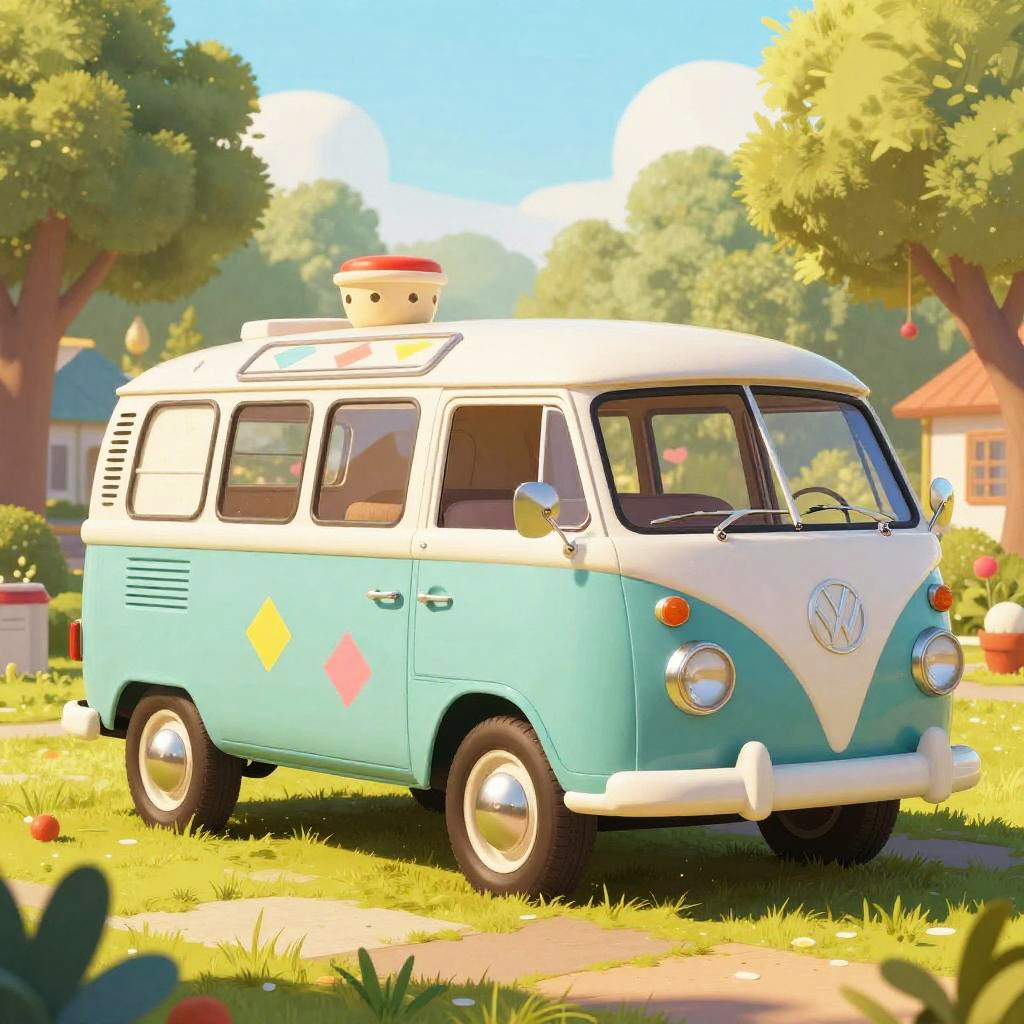 Kawaii Pastel Vintage Tram Illustration