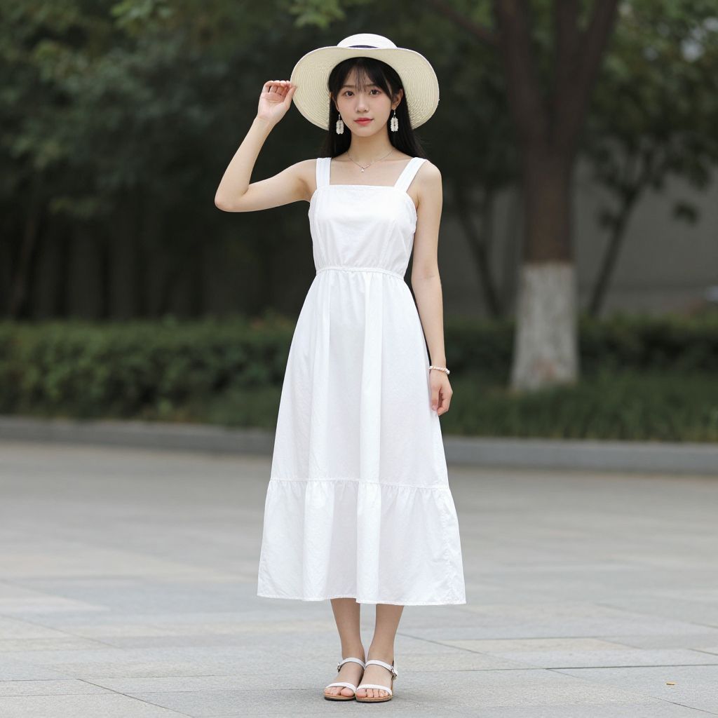Summer Woman in White Sundress