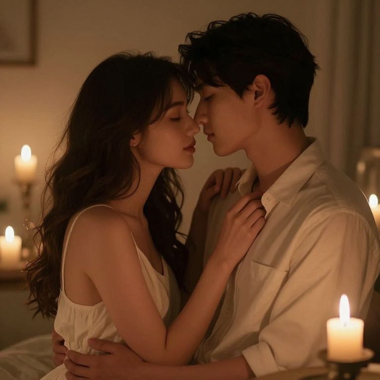 In a moment suspended between intimacy and infinity, two souls converge in a tender embrace, their breaths mingling like whispers of eternity amidst the soft glow of candlelight and the quiet hum of whispered promises.