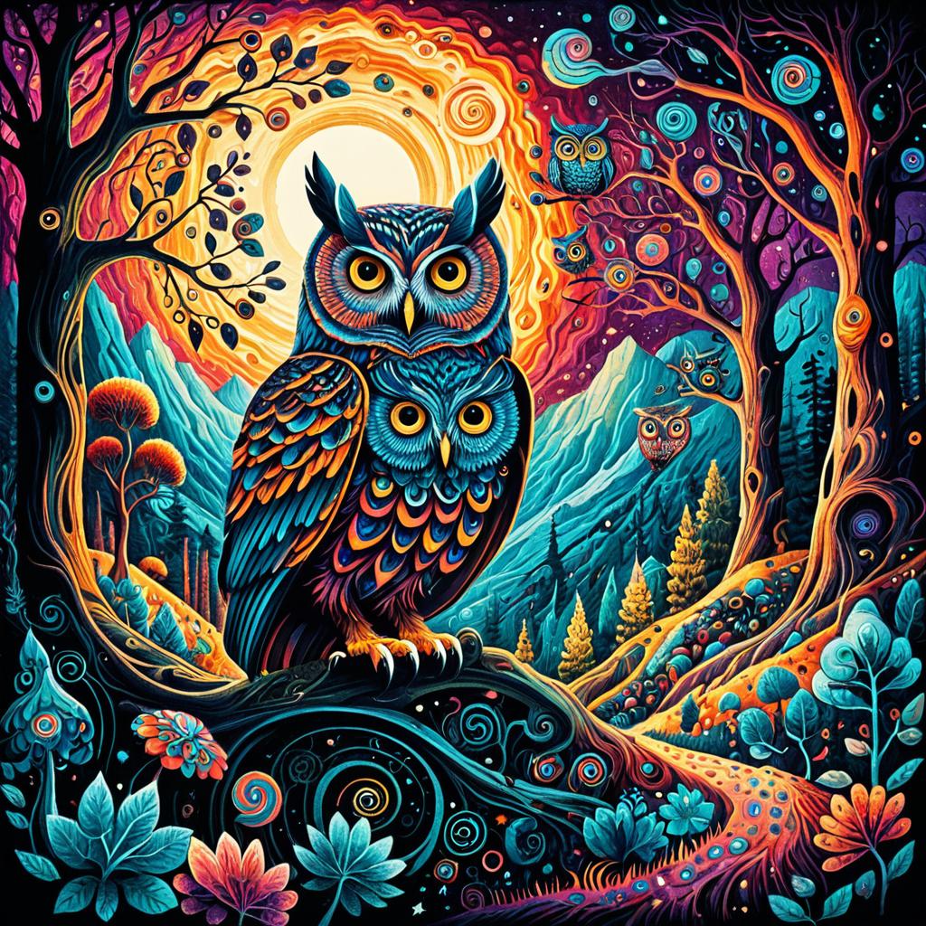 Surrealist illustration of a vibrant and otherworldly landscape filled with swirling patterns, abstract shapes, fantastical creatures such as mythical dragons, and crystalline flora. High quality, ultra-detailed, vibrant colors, intricate surreal lighting, dreamlike and mystical.