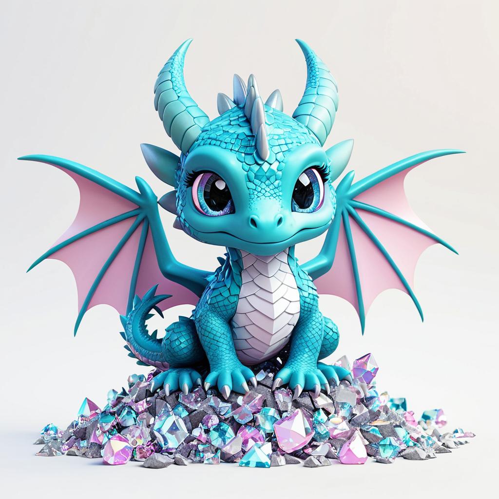 Kawaii Baby Dragon on Neon Crystal