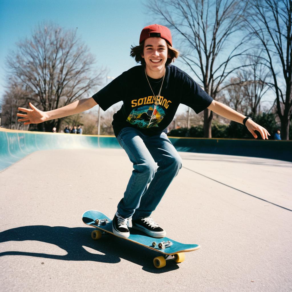 Teenager Skateboarding on Sunny Day