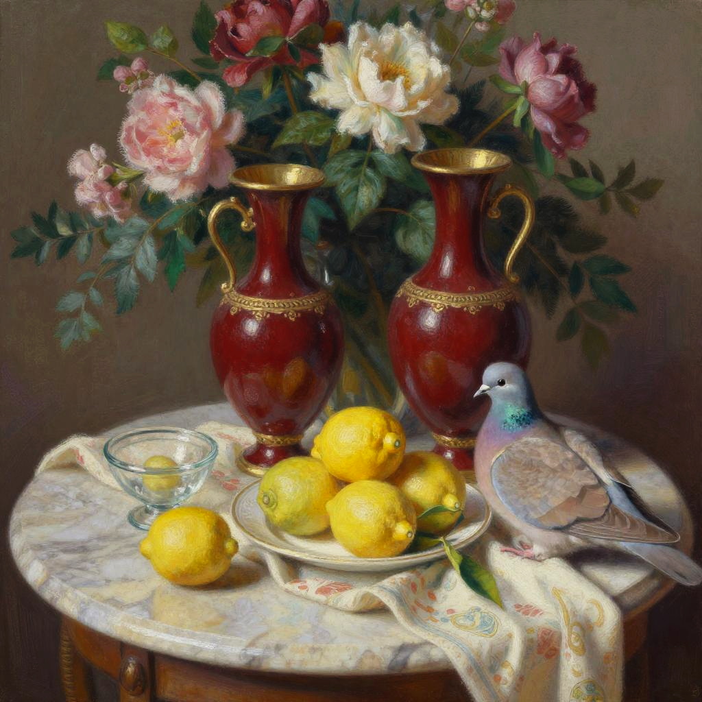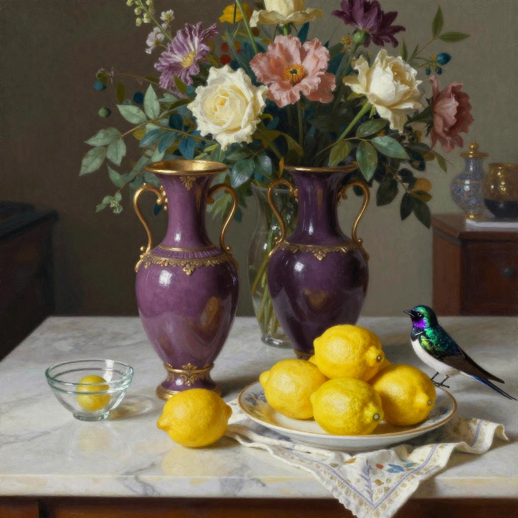 Ornate Vases and Lemons Still Life