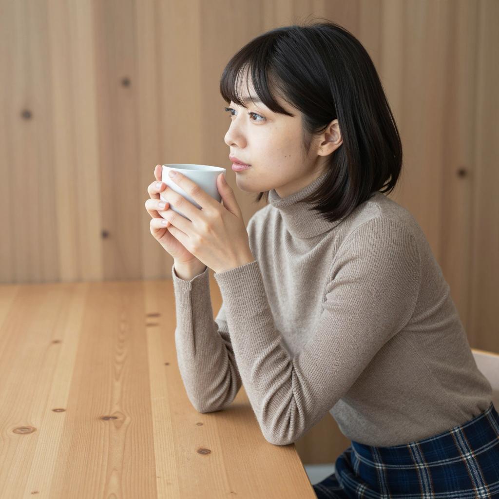 Japanese Woman with Brown Hair and Coffee
