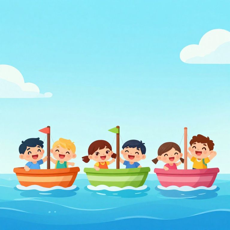 Icon three boats with happy families floating side by side on the top of the ocean, each is happy and has recently learned something. happy cartoon education style,
