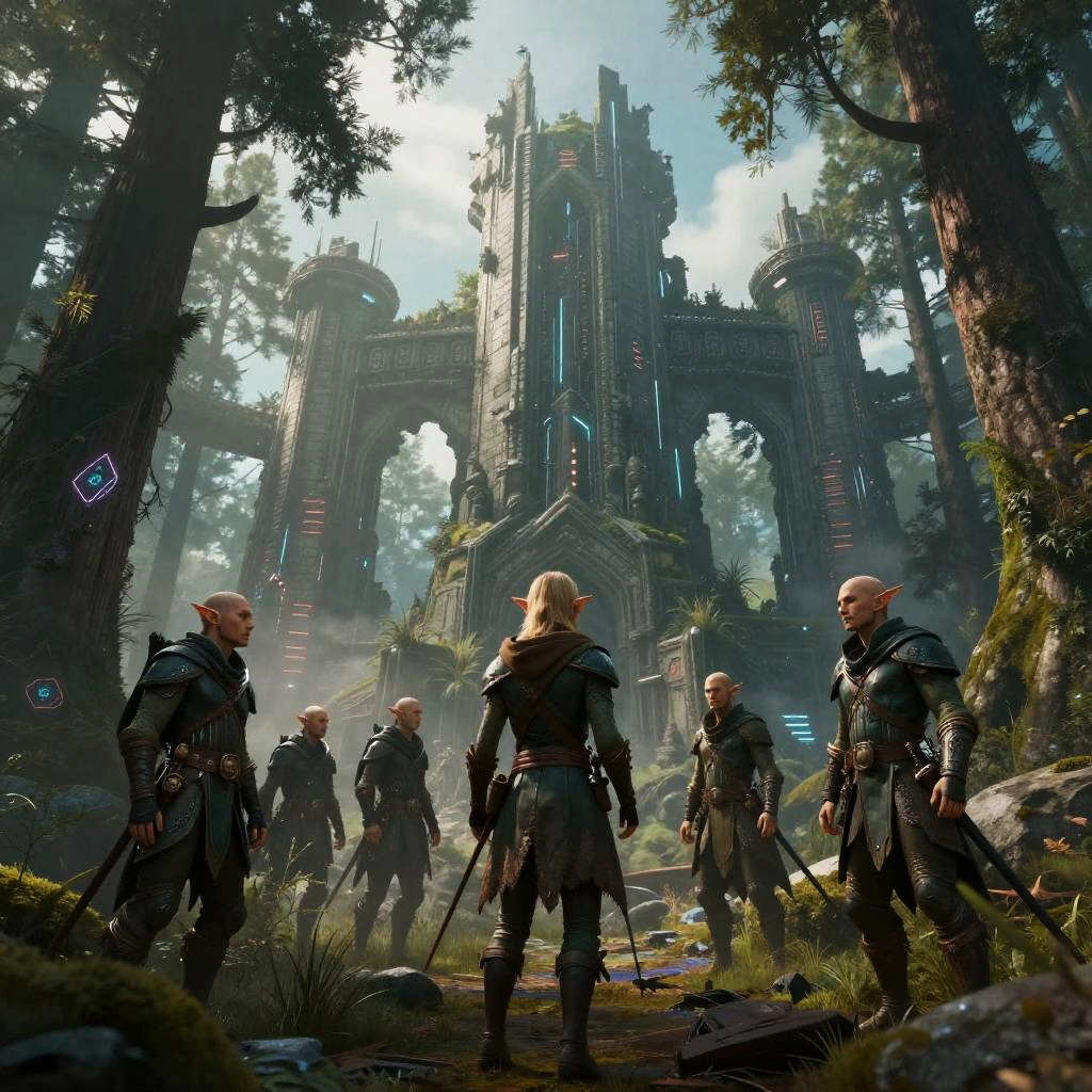 Cyberpunk Elves in Neon Boreal Forest