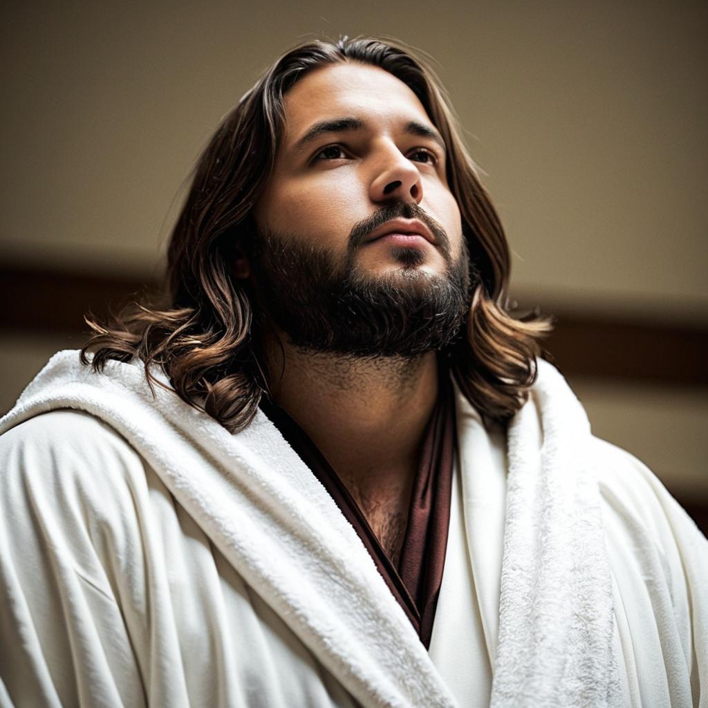 Man in Jesus Halloween Costume with Cross Necklace