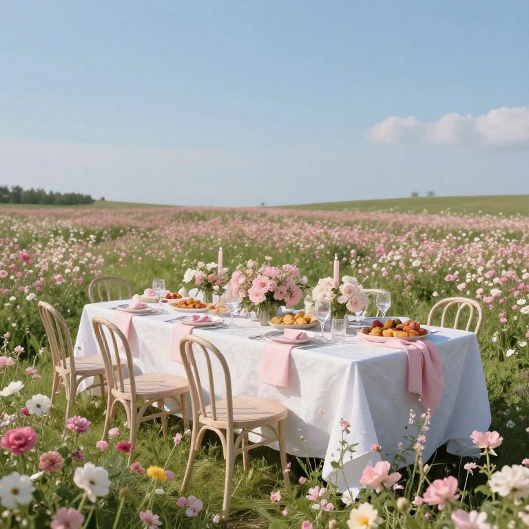 Mysterious Flower Field Dinner Scene