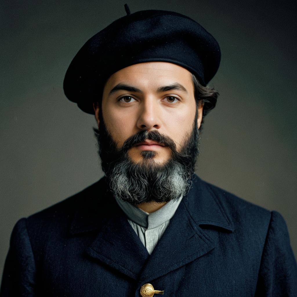 Man galileo galilei,1boy, male focus, solo, facial hair, beard, mustache, old, looking at viewer, realistic, old man, long sleeves