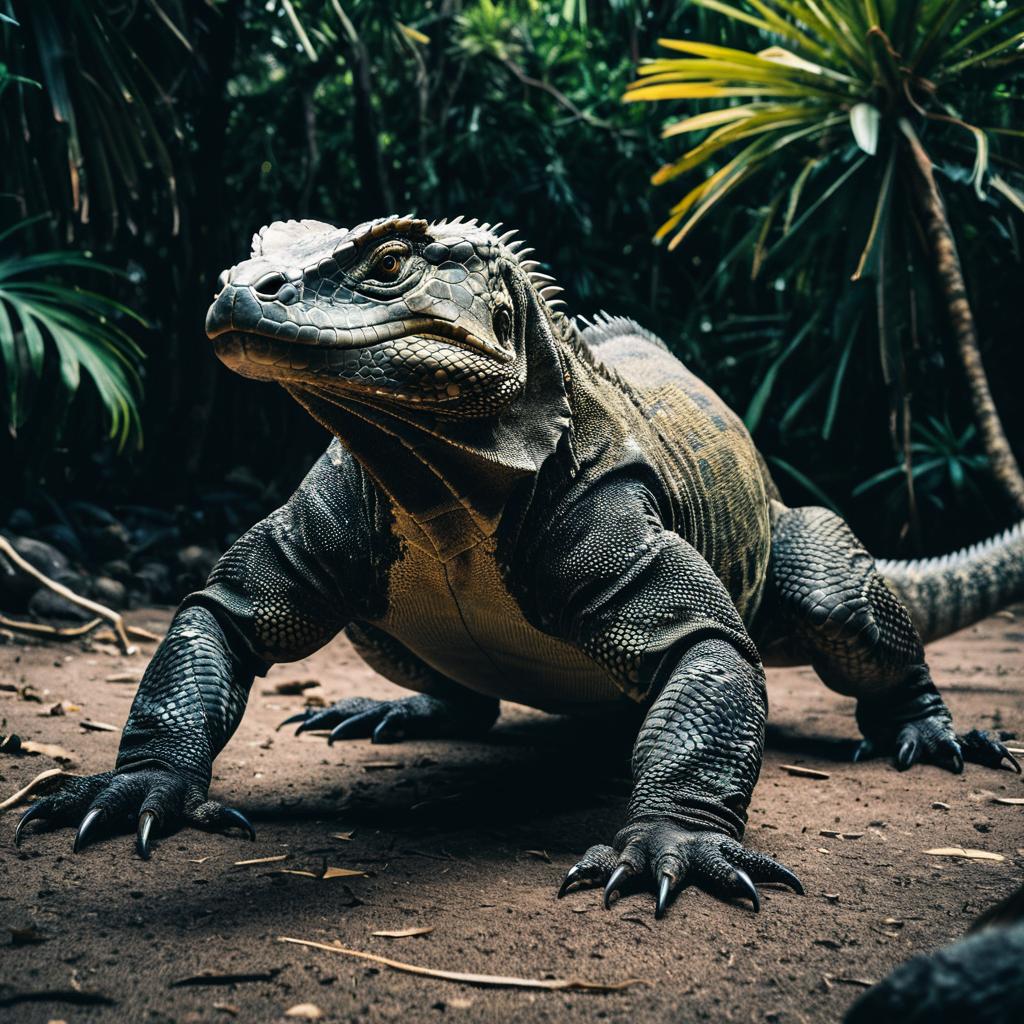 Ultra-Realistic Komodo Dragon in Tropical Forest