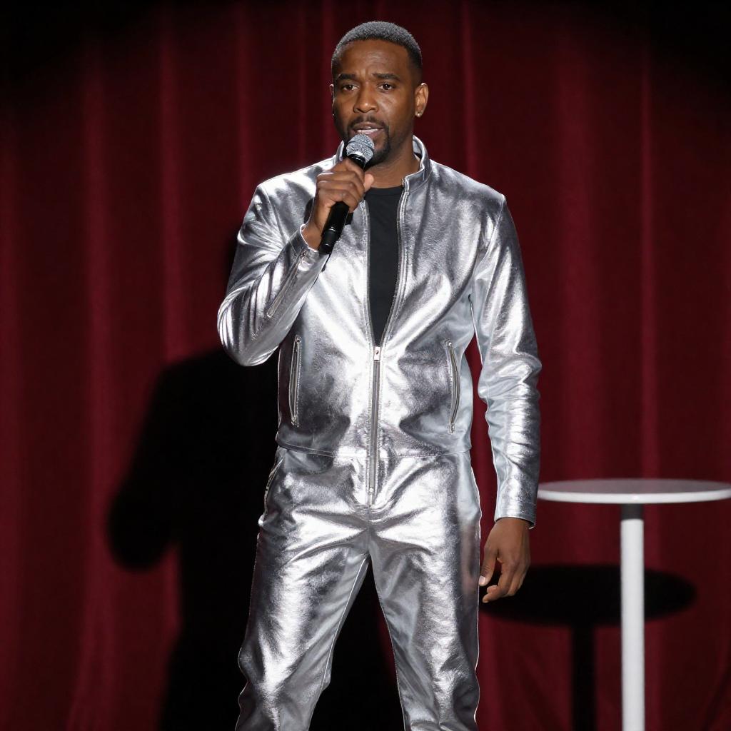 Stylish Male Singer in Metallic Jumpsuit