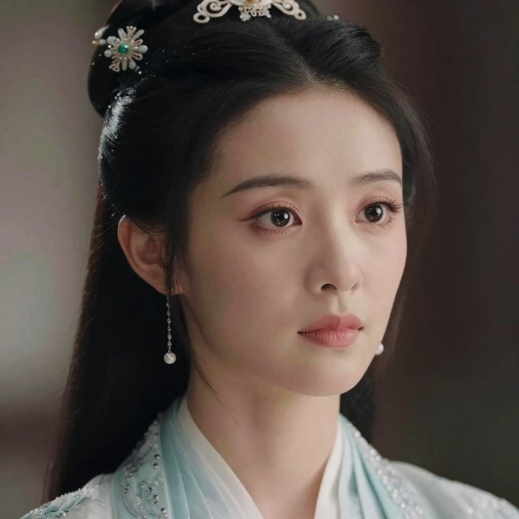 Photorealistic portrait of an 18-year-old slender East Asian woman wearing traditional attire and ornate headwear. She has long black hair styled up and secured with decorative hairpins featuring jade and intricate designs. She is smiling gently and looking directly at the viewer with soft cinematic light illuminating her face, highlighting her detailed facial features.