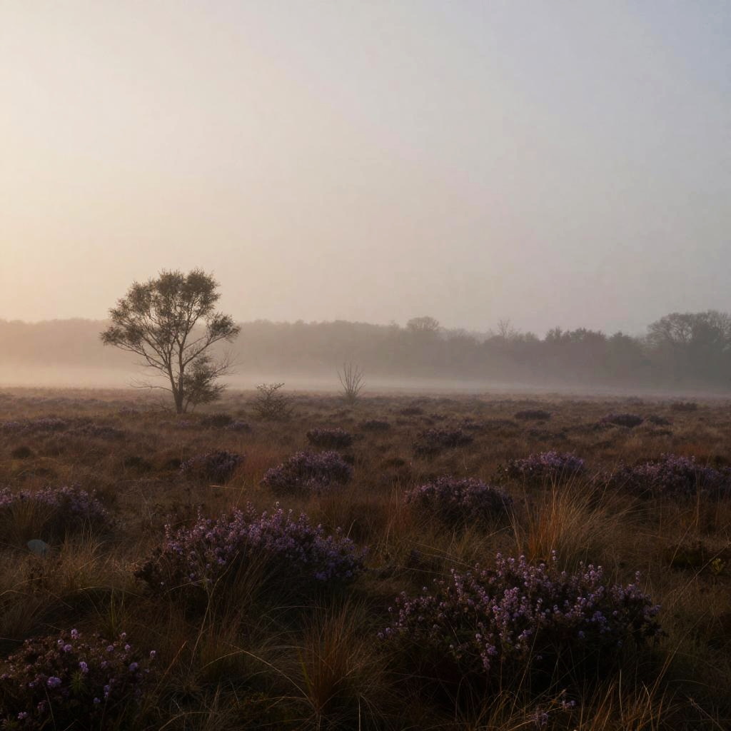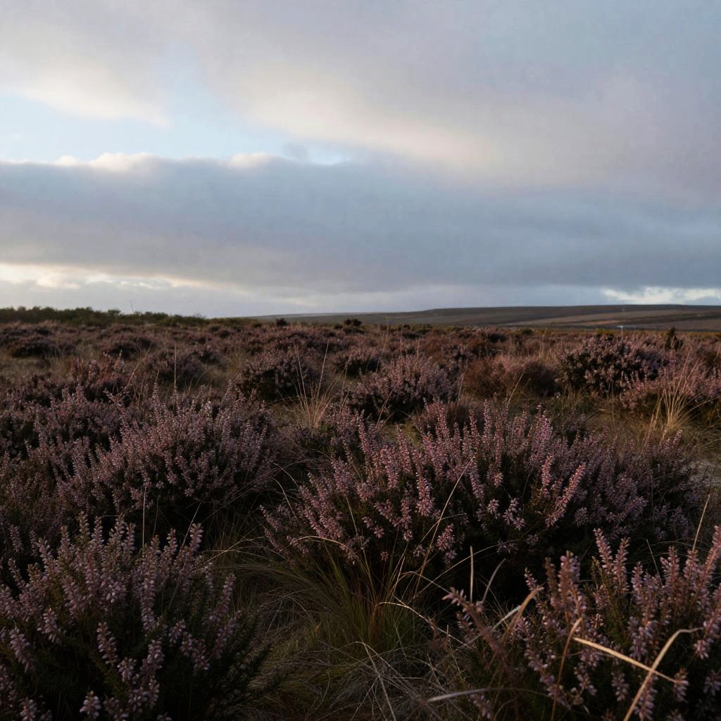 Open Heathland, futuristic cityscape, neon rain, twilight ambiance, Neon/Cyberpunk, Glowing futuristic look