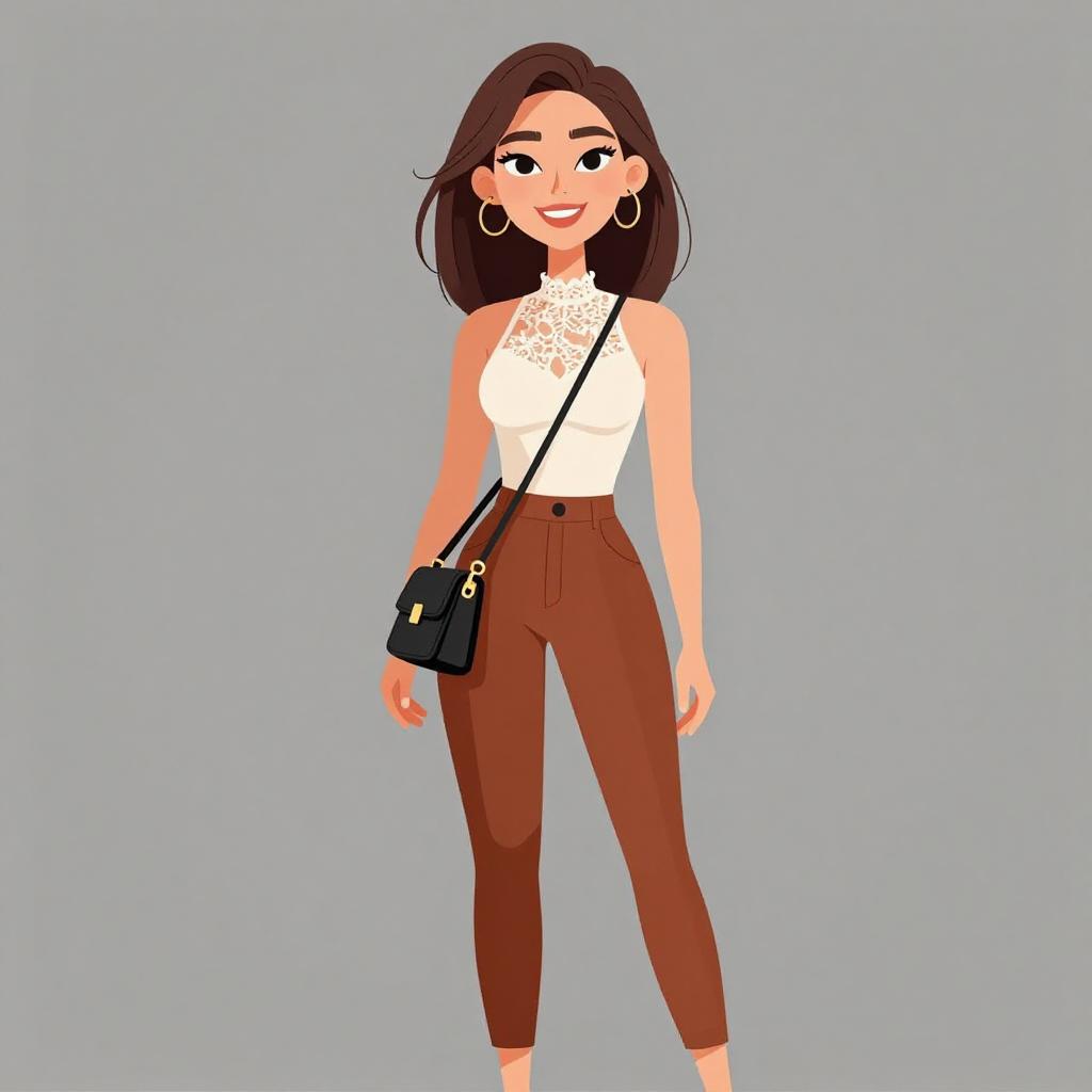 Photograph of a hand holding a smartphone displaying a digital cartoon of a smiling woman with brown hair, gold earrings, and blue top, in a blurred