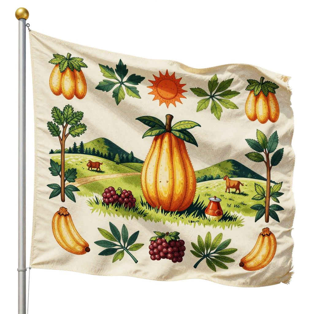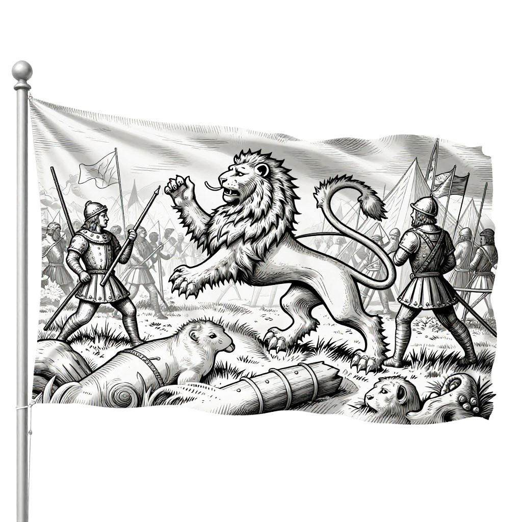 Illustration of a flag with gothic illustration style from 14th century featuring a holy cross waving in a church interior