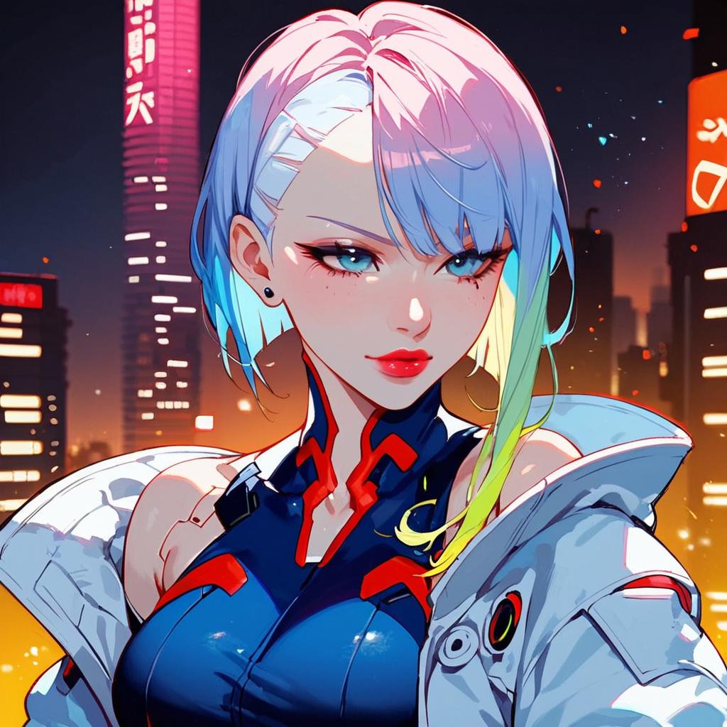 Cyberpunk Robot Girl with Glowing Cosmic Background