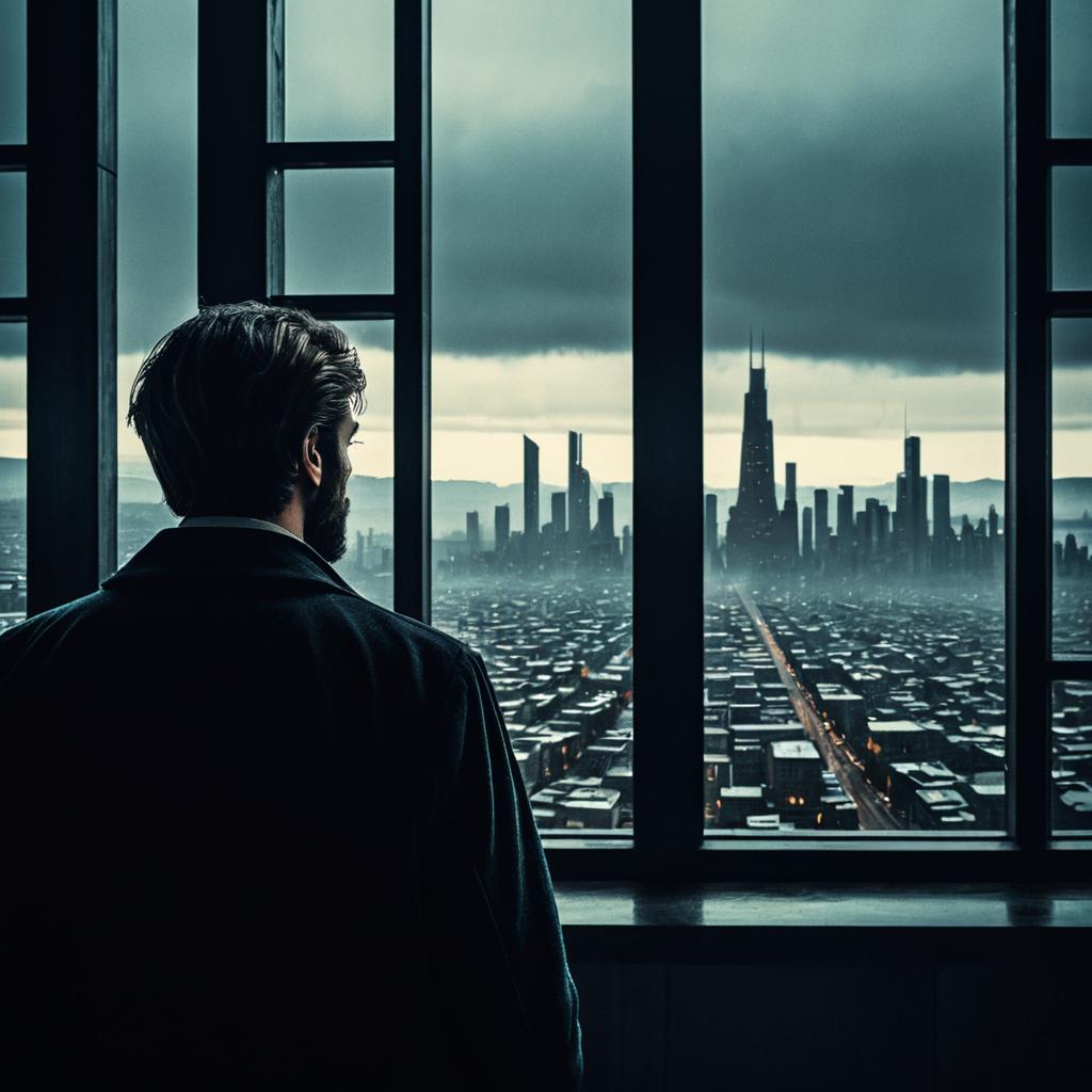 Contemplative Interior Figure Facing Futuristic Vista