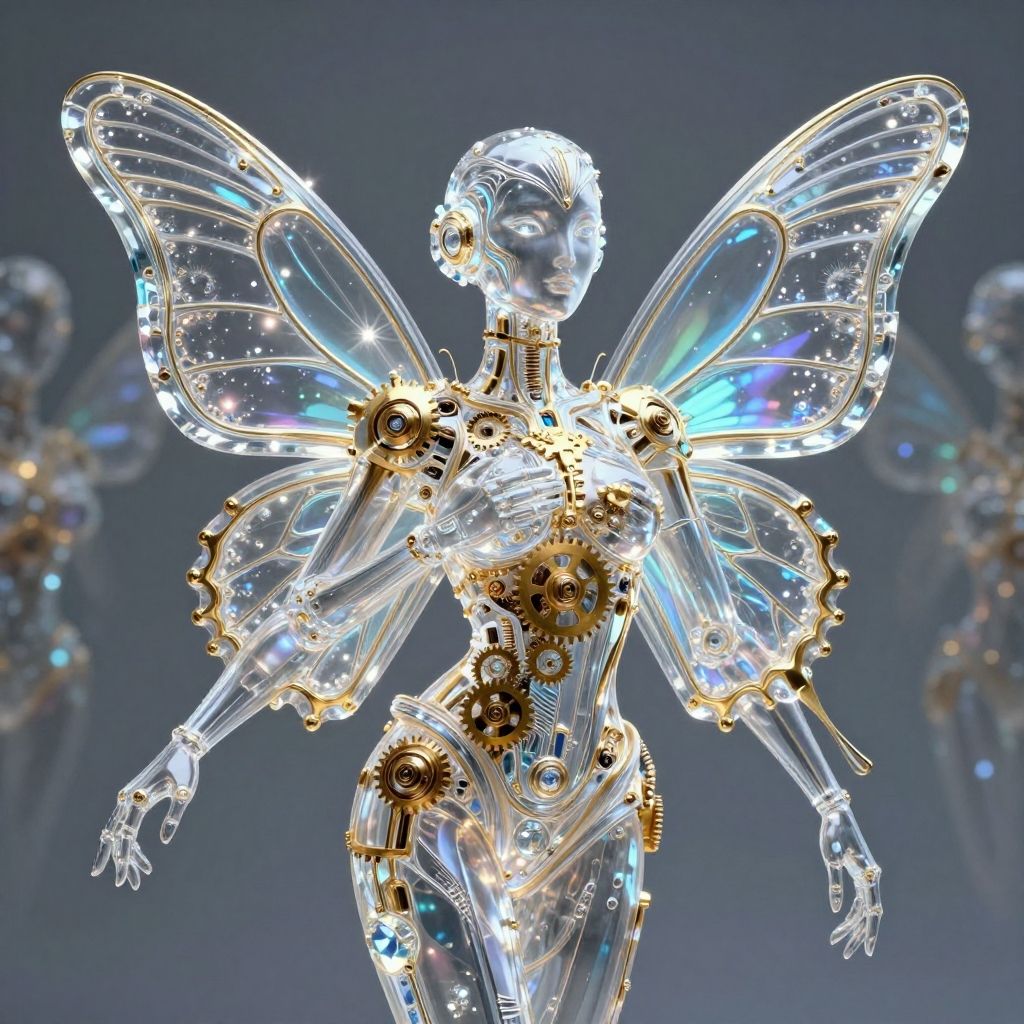 Intricate Transparent Golem with Crystal Wings