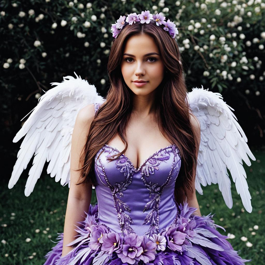 Fairy princess costume woman,1girl, solo, wings, long hair, dress, brown hair, fairy, fairy wings, realistic, brown eyes, pink dress, breasts, flower, head wreath, looking at viewer