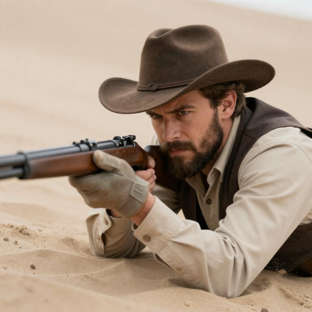 Two Men with Sniper Rifle in Desert